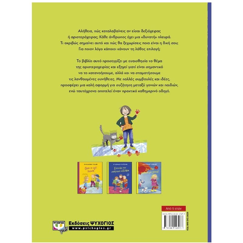Αλήθεια, πώς καταλαβαίνεις αν είσαι δεξιόχειρας ή αριστερόχειρας; Κάθε άνθρωπος έχει μια «δυνατή» πλευρά. Τι ακριβώς σημαίνει αυτό και πώς θα ξεχωρίσεις ποια είναι η δική σου; Για ποιον λόγο κάποιοι κάνουν τη λάθος επιλογή; Το βιβλίο αυτό προσεγγίζει με ευαισθησία το θέμα της αριστεροχειρίας και εξηγεί γιατί είναι σημαντικό να το κατανοήσουμε, αλλά να σταματήσουμε τις λανθασμένες συνήθειες. Με πολλές συμβουλές και ιδέες, προσφέρει μια καλή αφορμή για συζήτηση μεταξύ γονιών και παιδιών, ενώ ταυτόχρονα αποτελεί έναν πρακτικό καθημερινό οδηγό.