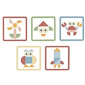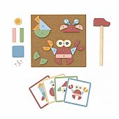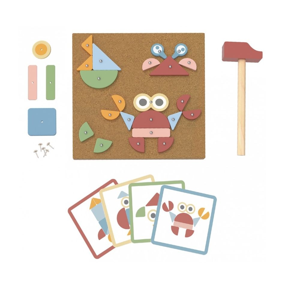 Αυτό το παιχνίδι αποτελεί ένα πρωτότυπο παιχνίδι δημιουργικότητας και φαντασίας με καρφώματα. Πιο συγκεκριμένα, περιέχει έναν τετράγωνο φελλό με διαστάσεις 18 x 18 εκ., ένα σφυράκι, 35 μεταλλικά καρφάκια, κάρτες με 20 διαφορετικά σχέδια, πολύχρωμα σχήματα και σχέδια. Με αυτό το παιχνίδι τα παιδιά προσπαθούν να ταιριάξουν τα σχήματα μεταξύ τους ώστε να αναπαραστήσουν την εικόνα της κάρτας. Έτσι, αναπτύσσουν τις βασικές μαθηματικές δεξιότητες, τις κινητικές δεξιότητες και τον συντονισμό χεριού-ματιού. Επίσης, είναι ένα παιχνίδι που καλλιεργεί τη γνωστική ανάπτυξη του παιδιού και διεγείρει την κριτική και συνδυαστική σκέψη μέσω της απεικονιστικής μνήμης.