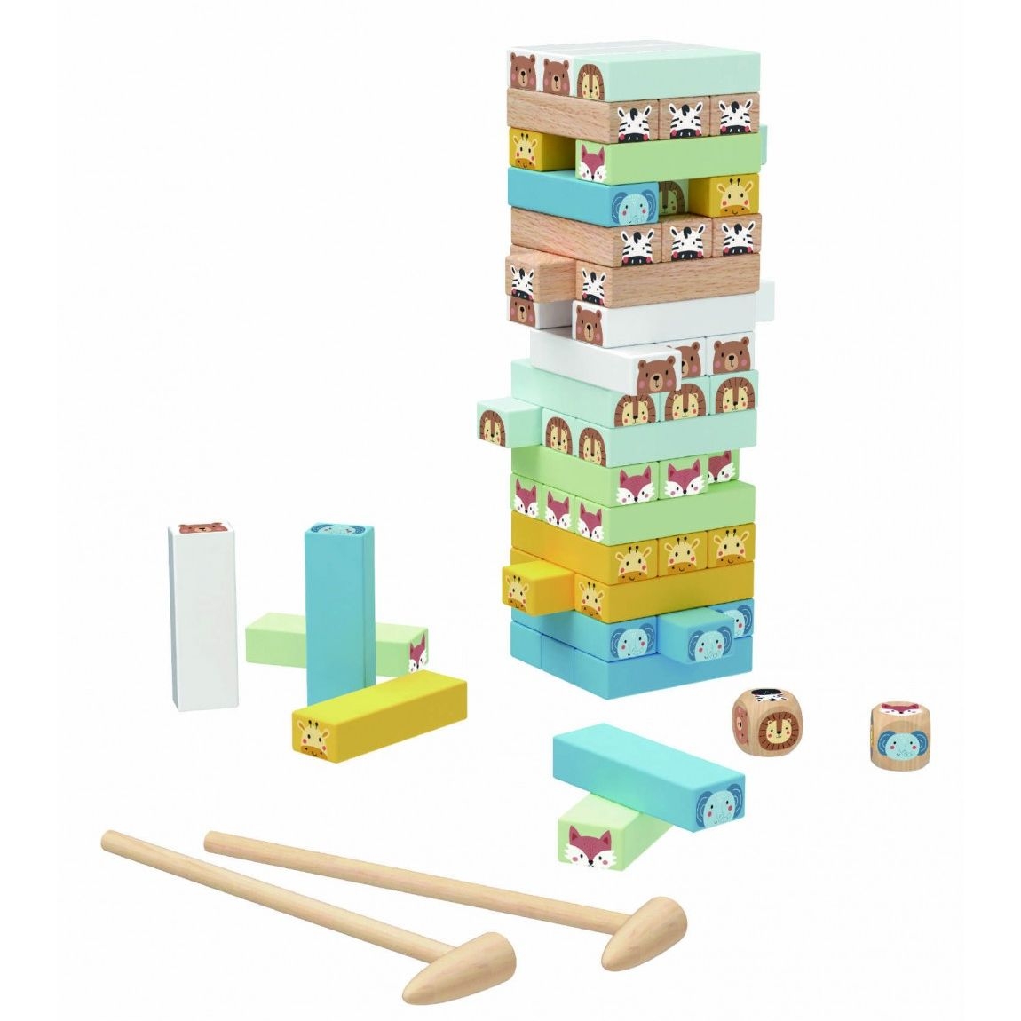 Ένα επιτραπέζιο παιχνίδι στοίβαξης και ισορροπίας για τους μικρούς μας φίλους. Ρίξε το ζάρι και αφαίρεσε από τον πύργο/στοίβα το τουβλάκι με το ζωάκι που σου δείχνει το ζάρι. Μπορείς να βγάλεις το τουβλάκι χωρίς να ρίξεις τον πύργο; Ένα παιχνίδι που συνδυάζει το συντονισμό χεριού - ματιού μέσω της εξάσκησης των κινητικών δεξιοτήτων.