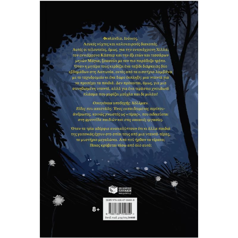 Φινλανδία, Ιούνιος. Λευκές νύχτες και καλοκαιρινές διακοπές. Αυτές οι τελευταίες, όμως, για την εντεκάχρονη Χίλλα, τον εννιάχρονο Κάσπερ και την έξι ετών και τεσσάρων μηνών Μάγια, ξεκινούν με τον πιο παράδοξο τρόπο. Όταν η μητέρα τους κερδίζει ένα ταξίδι διάρκειας δύο εβδομάδων στη Λαπωνία, εκτός από τα εισιτήρια λαμβάνει με το ταχυδρομείο κι ένα δώρο έκπληξη: μια νταντά για να προσέχει τα παιδιά. Δεν πρόκειται, όμως, για μια συνηθισμένη νταντά, αλλά για ένα τεράστιο χνουδωτό πλάσμα που μυρίζει μούχλα και δε μιλάει!"Οικογένεια υποδοχής: Χέλλμαν. Είδος που απεστάλη: Ένας εκπαιδευμένος περίπου-άνθρωπος, κοινώς γνωστός ως «τέρας», που ειδικεύεται στη φροντίδα παιδιών και στις οικιακές εργασίες." Όταν τα τρία αδέρφια ανακαλύπτουν ότι κι άλλα παιδιά της γειτονιάς έχουν στο σπίτι τους από μια νταντά-τέρας, το μυστήριο μεγαλώνει. Από πού ήρθαν τα τέρατα; Ποιος κρύβεται πίσω από όλο αυτό;