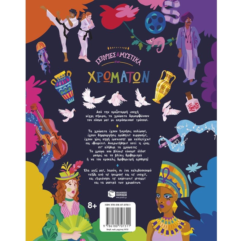 Από την προϊστορική εποχή μέχρι σήμερα, τα χρώματα διαμορφώνουν τον κόσμο μας με απρόσμενους τρόπους. Τα χρώματα έχουν ξεκινήσει πολέμους, έχουν δημιουργήσει αμύθητες περιουσίες, έχουν γίνει πηγή έμπνευσης για καλλιτέχνες και εφευρέτες. Αναρωτήθηκες ποτέ τι είναι στ’ αλήθεια τα χρώματα; Το χρώμα που βλέπεις κάποιος άλλος μπορεί να το βλέπει διαφορετικά ή να του προκαλεί διαφορετική αίσθηση! Έλα μαζί μας, λοιπόν, σε ένα καλειδοσκοπικό ταξίδι ανά τις ηπείρους και τις εποχές, και εξερεύνησε τις απίστευτες ιστορίες και τα μυστικά των χρωμάτων.