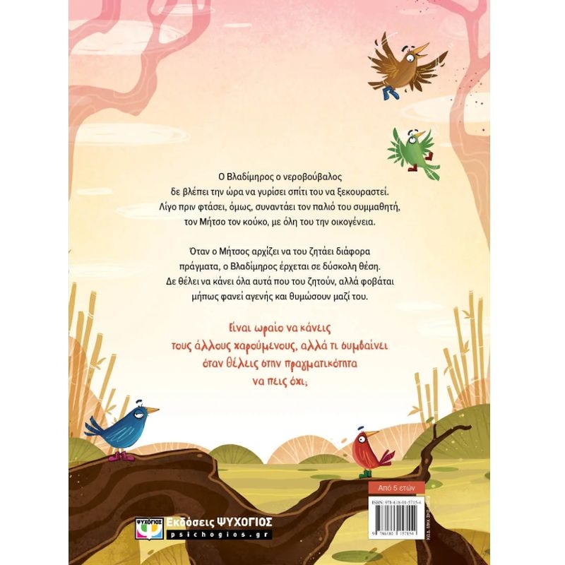 Ο Βλαδίμηρος ο νεροβούβαλος δε βλέπει την ώρα να γυρίσει σπίτι του να ξεκουραστεί. Λίγο πριν φτάσει, όμως, συναντάει τον παλιό του συμμαθητή, τον Μήτσο τον κούκο, με όλη του την οικογένεια. Όταν ο Μήτσος αρχίζει να του ζητάει διάφορα πράγματα, ο Βλαδίμηρος έρχεται σε δύσκολη θέση. Δε θέλει να κάνει όλα αυτά που του ζητούν, αλλά φοβάται μήπως φανεί αγενής και θυμώσουν μαζί του. Είναι ωραίο να κάνεις τους άλλους χαρούμενους, αλλά τι συμβαίνει όταν θέλεις στην πραγματικότητα να πεις όχι;