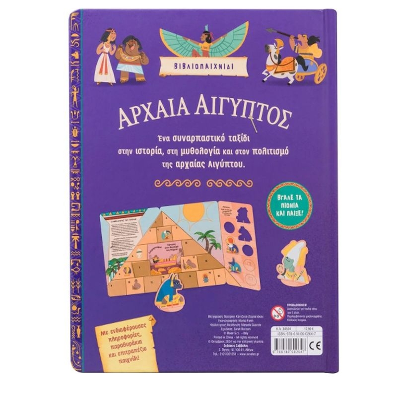 Ποιος ήταν ο Θωθ; Τι είναι το Κλειδί της ζωής; Πώς χτίζονταν οι πυραμίδες; Πού χρωστούσε τη φήμης της η πόλη της Αλεξάνδρειας; Ένα συναρπαστικό ταξίδι στην ιστορία, στη μυθολογία και στον πολιτισμό της αρχαίας Αιγύπτου. Με ενδιαφέρουσες πληροφορίες, παραθυράκια και επιτραπέζιο παιχνίδι! Βγάλε τα πιόνια και παίξε!