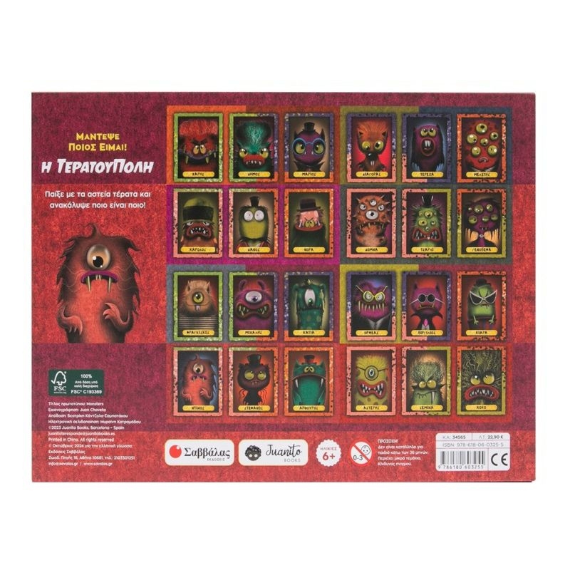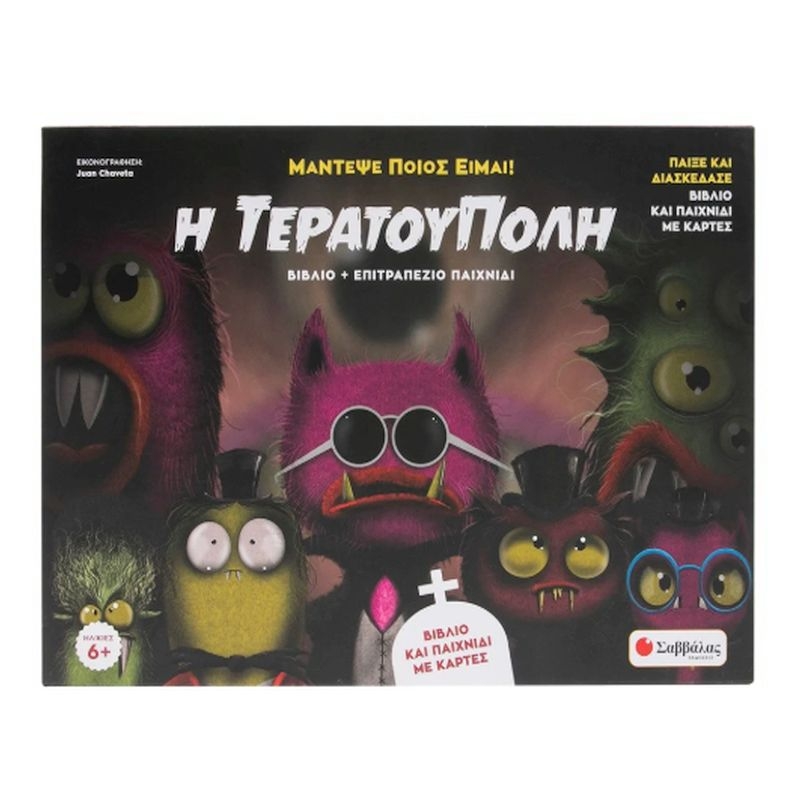 Μάντεψε ποιος είμαι! Η τερατούπολη από της Εκδόσεις Σαββάλας. Έχεις έξι μάτια; Είσαι πράσινο; Έχεις αυτιά; Είσαι τριχωτό; Να μερικές από τις αστείες ερωτήσεις που μπορείς να κάνεις για να νικήσεις στο παιχνίδι «Παίξε και μάντεψε ποιος είμαι!». Διάβασε το βιβλίο, παίξε το παιχνίδι και διασκέδασε προσπαθώντας να μαντέψεις ποιο από τα απίθανα αυτά τέρατα είναι του αντιπάλου σου!