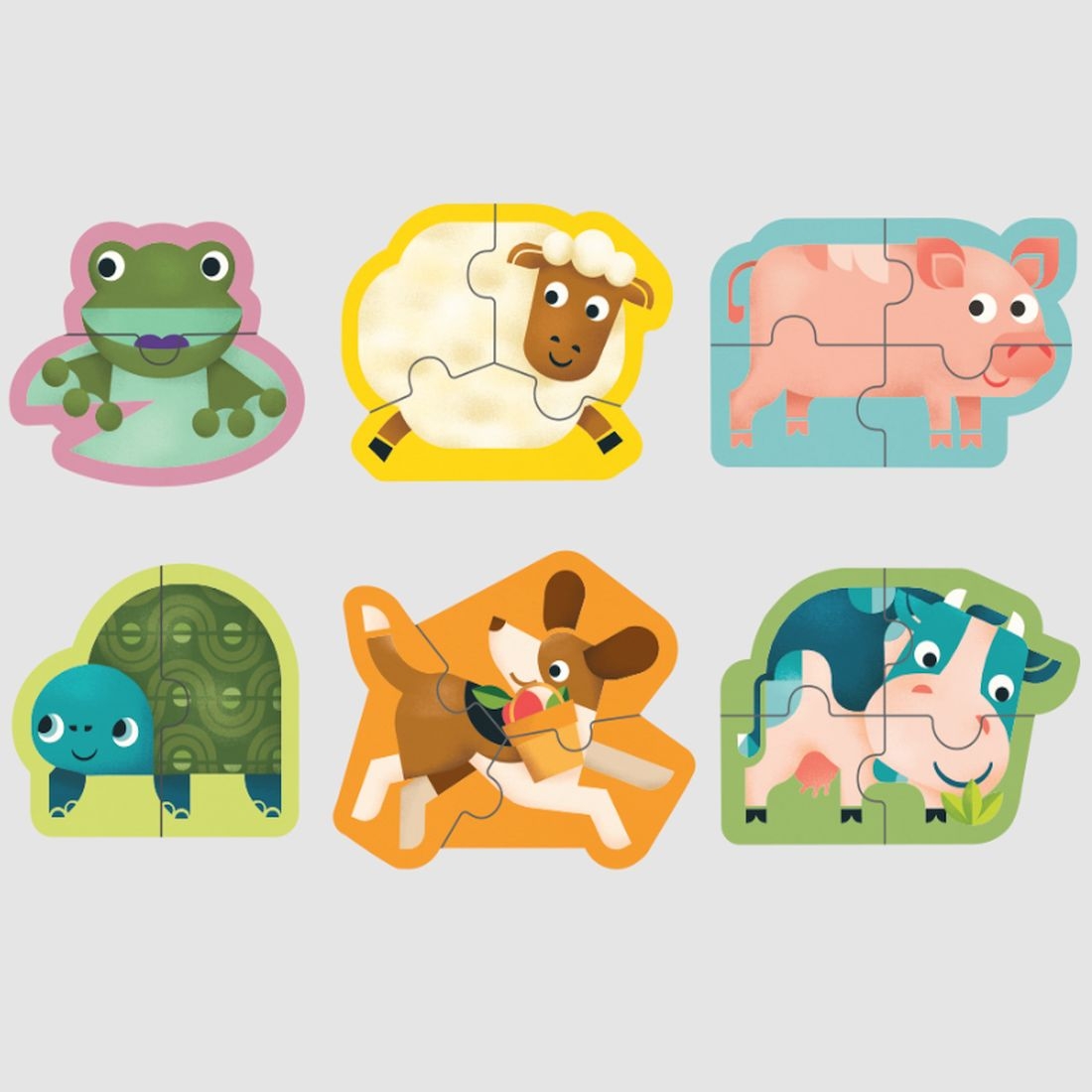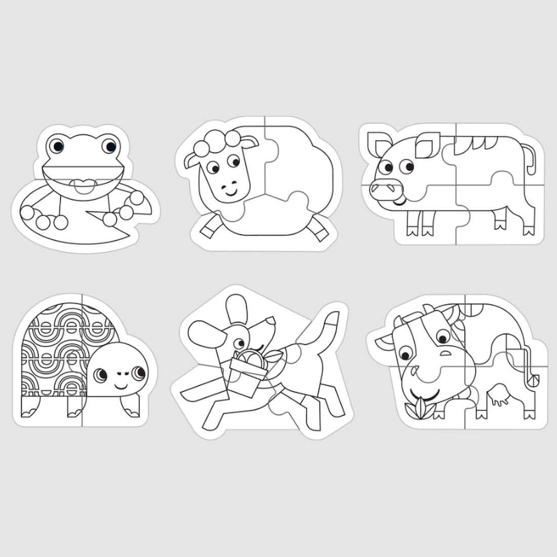 Τα Shaped Puzzles προσφέρουν ένα συναρπαστικό μείγμα διασκέδασης και εκπαίδευσης! Είναι κατασκευασμένα από υλικά υψηλής ποιότητας, φιλικά προς τα παιδιά, έχουν ζωηρή εικονογράφηση και εξασφαλίζουν μια διασκεδαστική εμπειρία παιχνιδιού. Το σετ διαθέτει 2 παζλ δύο τεμαχίων, 2 τριών τεμαχίων και 2 τεσσάρων τεμαχίων, προκαλώντας σταδιακά τα νεαρά μυαλά! Τα παζλ είναι διπλής όψεως και η μια τους πλευρά μπορεί να χρωματιστεί ανάλογα με τις διαθέσεις των μικρών μας φίλων! Τα παζλ ενθαρρύνουν την επικοινωνία και την αφήγηση.