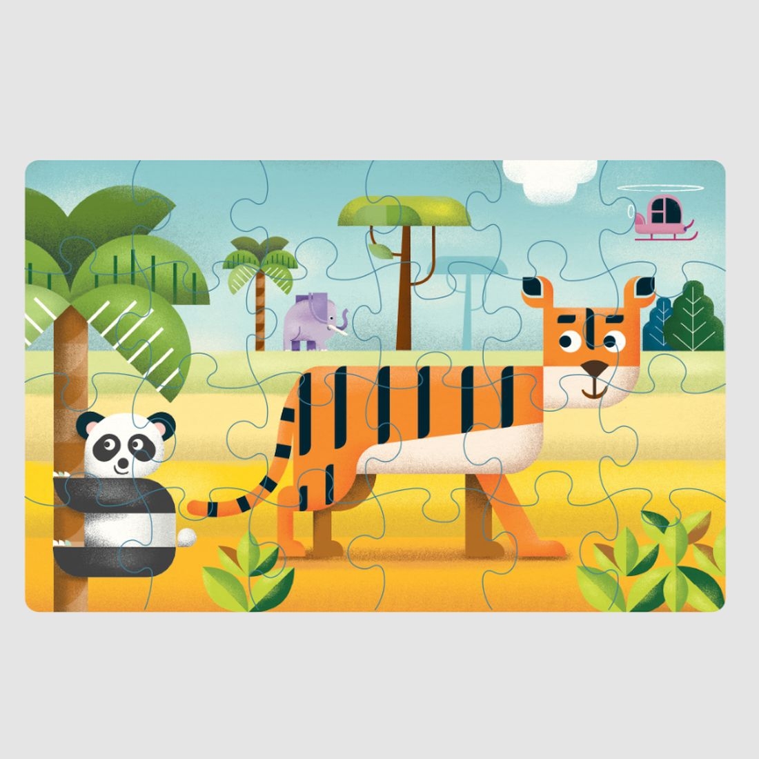 Βυθιστείτε στην απολαυστική πρόκληση της συναρμολόγησης άγριων ζώων, της σαβάνας και της ερήμου. Με 48 κομμάτια ξεκλειδώστε νέες περιπέτειες κομμάτι-κομμάτι! Αυτά τα προσεγμένα σετ διαθέτουν 2 παζλ, το καθένα με 24 περίπλοκα σχεδιασμένα κομμάτια, που παρουσιάζουν ζωντανές και συγκινητικές σκηνές σαφάρι! Τα παζλ ενθαρρύνουν την επικοινωνία και την αφήγηση. Κατασκευασμένο από υλικά υψηλής ποιότητας, εξασφαλίζοντας ανθεκτικότητα και αμέτρητες ώρες χαρούμενου παιχνιδιού!