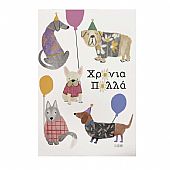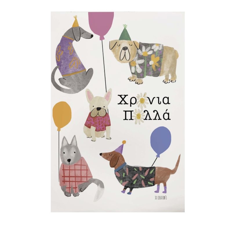 Χειροποίητη ευχετήρια κάρτα με Φάκελο - Χρόνια Πολλά (Σκυλάκια/11x15.5) - J.o. Creations