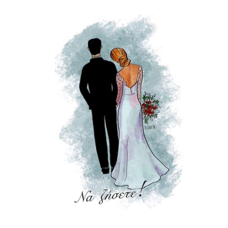 Χειροποίητη ευχετήρια κάρτα με Φάκελο - Να Ζήσετε! (Ζευγαρί/11x15.5) - J.o. Creations