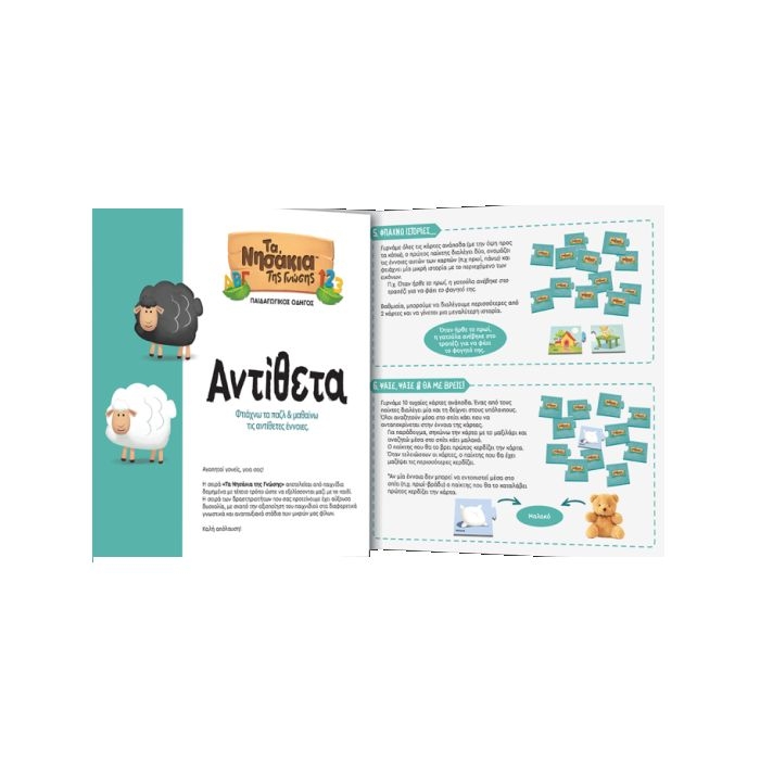 Περιλαμβάνει: 30 μεγάλα κομμάτια παζλ με αντίθετες έννοιες, 8 τρόποι παιχνιδιού και Παιδαγωγικός Οδηγός με δραστηριότητες διαβαθμισμένης δυσκολίας.