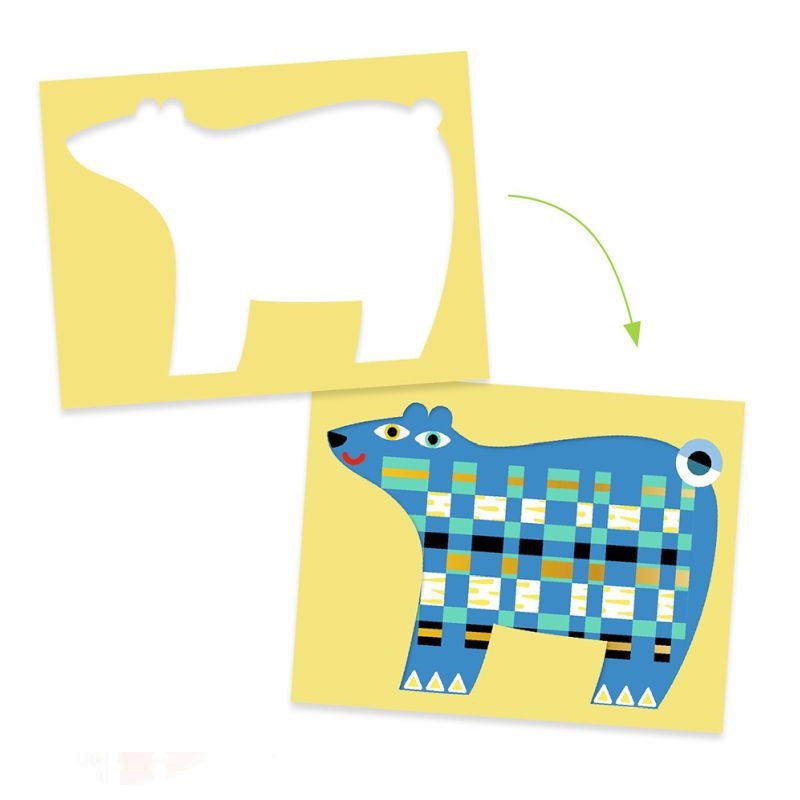 Κατασκευάστε 4 πολύχρωμα ζωάκια με αυτήν την ιδιαίτερη χειροτεχνία της εταιρίας Djeco! Τα παιδιά υφαίνουν μεγάλες λωρίδες χαρτιού πάνω σε προκομμένες κάρτες και τις στολίζουν με αυτοκόλλητα, με σκοπό να δημιουργήσουν 4 ζωάκια: ένα κροκόδειλο, έναν ελέφαντα, μία χελώνα και μία αρκούδα! Μία δημιουργική απασχόληση με την οποία τα παιδιά μαθαίνουν να ακολουθούν οδηγίες βήμα – βήμα, ενώ παράλληλα αναπτύσσουν σε βάθος τη λεπτή κινητικότητα τους, τον συντονισμό χεριού - ματιού και την συγκέντρωση τους.