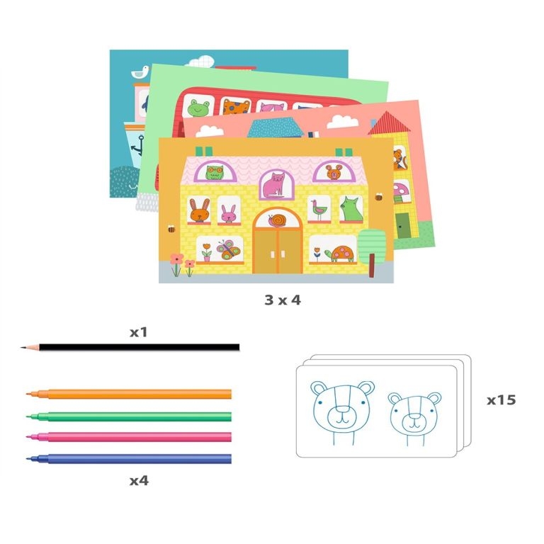 Ευφάνταστη δραστηριότητα ζωγραφικής για παιδιά από την εταιρεία Djeco. Τα παιδιά μπορούν να εντοπίσουν πίσω από τα παράθυρα 30 διαφορετικά ζωάκια και να τα χρωματίσουν, δίνοντας ζωή στα διάφορα σκηνικά. Μια δραστηριότητα που βοηθάει στην λεπτή κινητικότητα, την συγκέντρωση και τον συντονισμό χεριού ματιού.