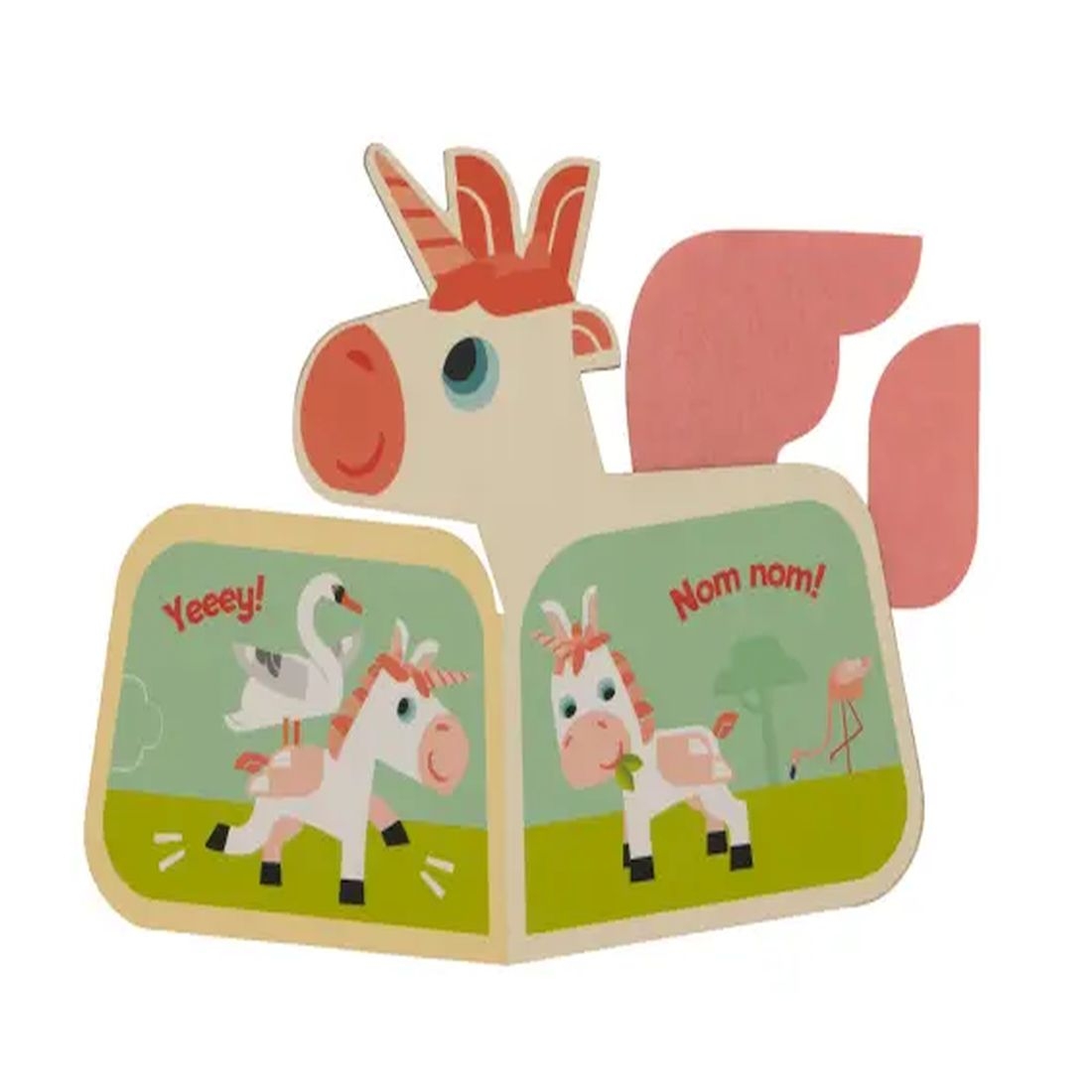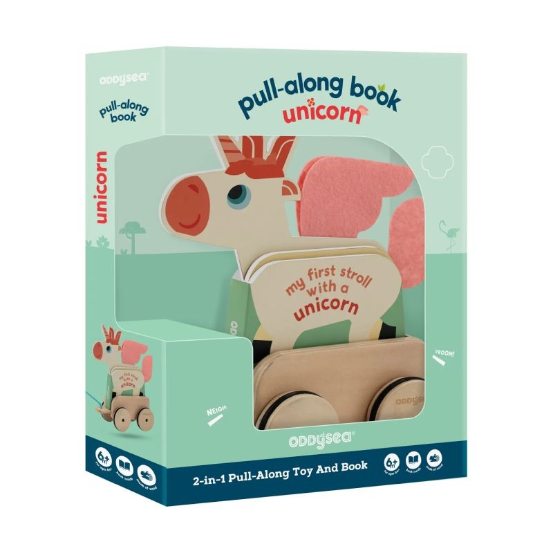 Κεντρίστε την αγάπη του παιδιού με τα διασκεδαστικά συρόμενα παιχνίδια που όταν ανοίγουν γίνονται χαρτονέ βιβλία. Το συρόμενο βιβλίο έχει οκτώ σελίδες και διασκεδαστικό σχήμα, λεπτομέρειες από τσόχα, που εφαρμόζει άψογα σε μια ξύλινη, κινούμενη βάση. Κάντε μια βόλτα μ’ έναν μαγικό μονόκερο καθώς αυτός θα παίζει με τους φίλους του στη στεριά, στο νερό και στον ουρανό, και θαυμάστε πολλά μαγικά μέρη! Μπορείτε να μιμηθείτε τους ήχους που κάνει ο μονόκερος;