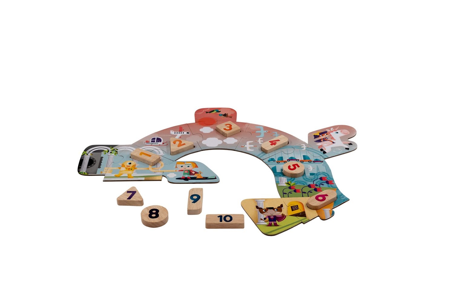 Περιλαμβάνει: 17 κομμάτια παζλ, 10 ξύλινα κομμάτια ντόμινο.