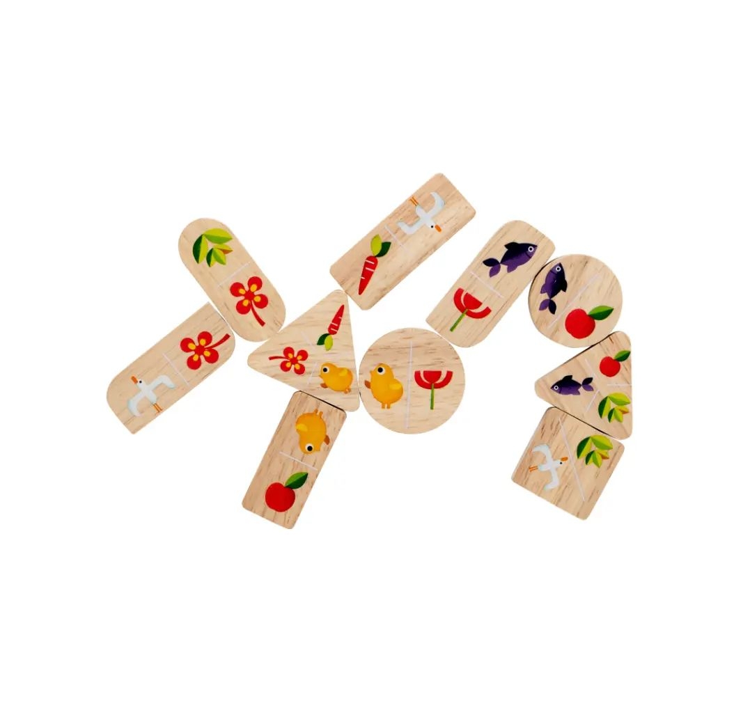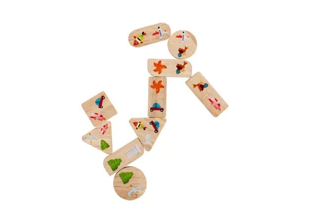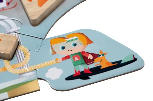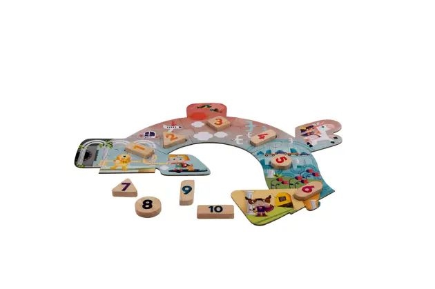 Περιλαμβάνει: 15 κομμάτια παζλ, 10 ξύλινα κομμάτια ντόμινο.