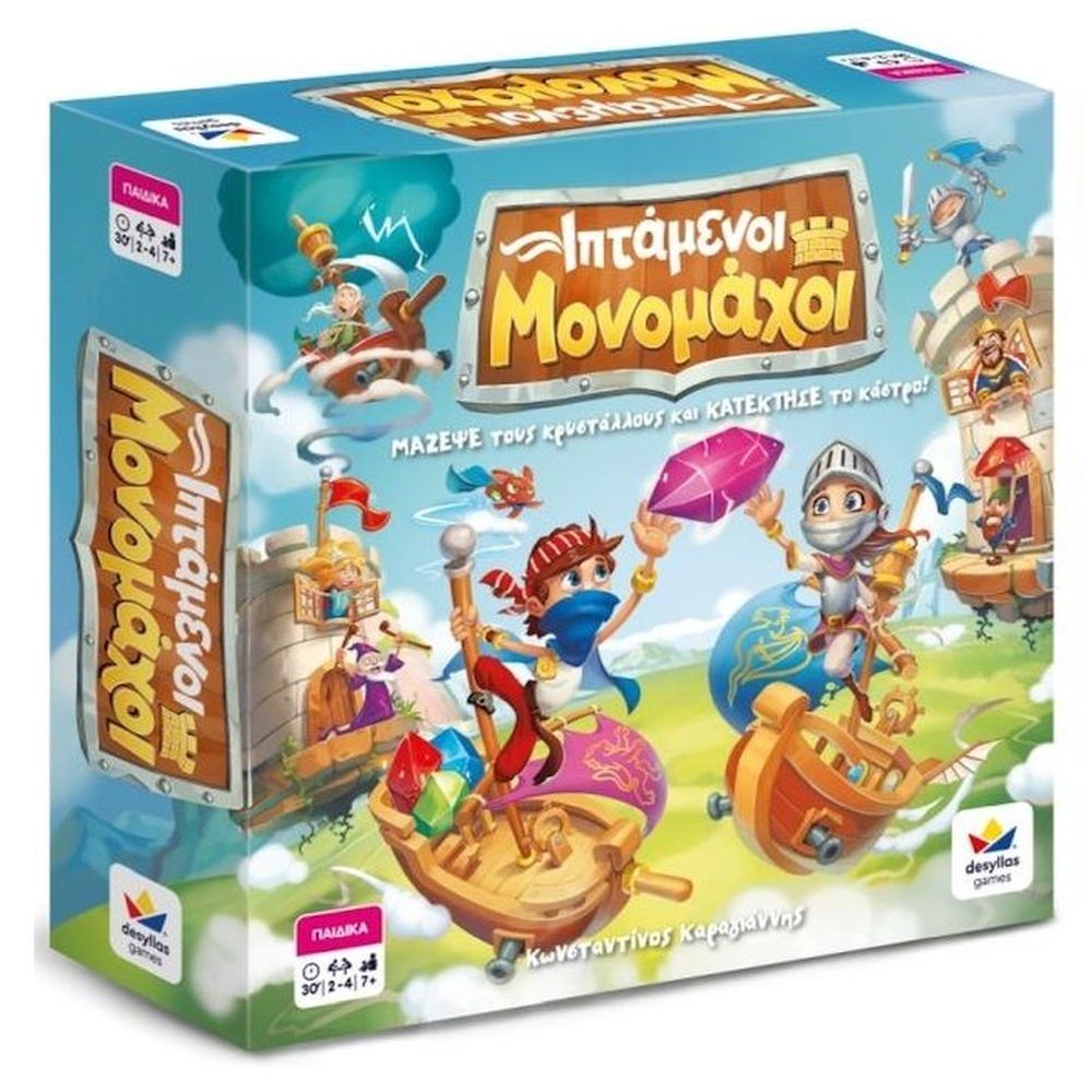 Καλωσήλθες στον κόσμο των Ιπτάμενων Μονομάχων! Ταξίδεψε από νησί σε νησί, μάζεψε πολύτιμους κρυστάλλους και τοποθέτησε τις σημαίες σου στους πύργους. Χρησιμοποίησε τον φυσητήρα για να μετακινήσεις το πλοίο σου και να ξεπεράσεις τους αντιπάλους σου. Ιδανικό για όλες τις ηλικίες, οι Ιπτάμενοι Μονομάχοι συνδυάζουν στρατηγική και επιδεξιότητα με έναν πρωτότυπο τρόπο παιχνιδιού.