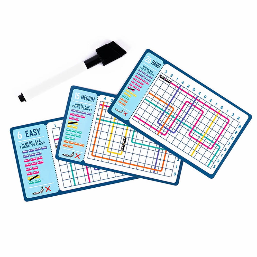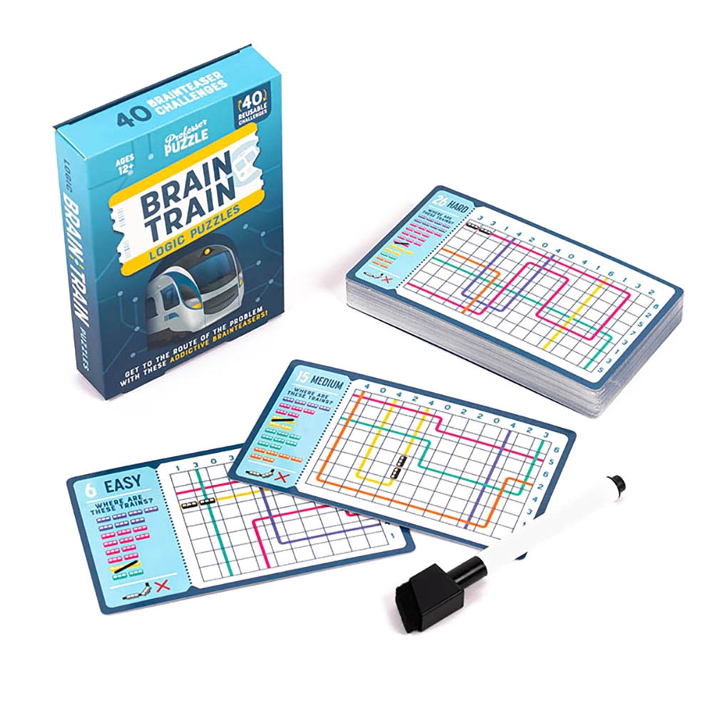 Βουτήξτε σε έναν κόσμο περιπέτειας με το σετ Brain Train 40 Logic Puzzles! Κάθε μία από τις 40 επαναχρησιμοποιούμενες κάρτες είναι μια νέα περιπέτεια, που προσφέρει εύκολα, μεσαία και δύσκολα επίπεδα για να καλύψει όλα τα επίπεδα δεξιοτήτων. Αυτές οι επαναχρησιμοποιούμενες κάρτες είναι ιδανικές για όλες τις ηλικίες είτε συμμετέχετε στις μετακινήσεις στις ώρες αιχμής είτε διατηρείτε το τρένο των σκέψεων σας.