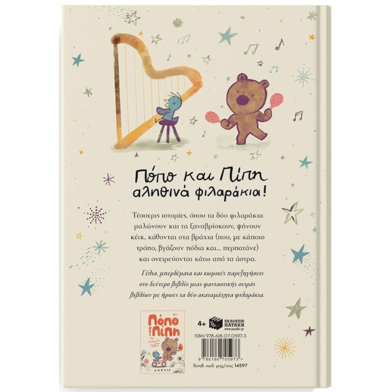 Τέσσερις ιστορίες, όπου τα δύο φιλαράκια μαλώνουν και τα ξαναβρίσκουν, ψήνουν κέικ, κάθονται στα βράχια (που, με κάποιο τρόπο, βγάζουν πόδια και… περπατάνε) και ονειρεύονται κάτω από τα άστρα. Γέλια, μπερδέματα και κωμικές παρεξηγήσεις στο δεύτερο βιβλίο μιας φανταστικής σειράς βιβλίων με ήρωες τα δύο ακαταμάχητα φιλαράκια.