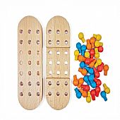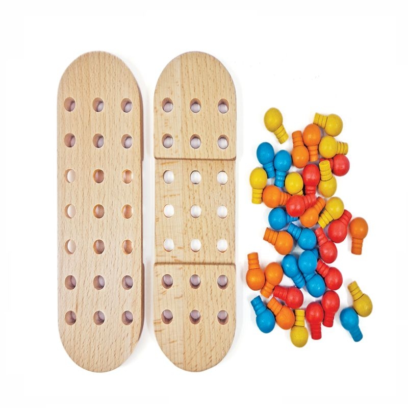 Περιλαμβάνει: Μια χρωματιστή ρετρό συσκευασία που περιέχει τα 2 μέρη της βάσης και 32 πιόνια, τα οποία μπορούν και να τοποθετηθούν με αναρίθμητους τρόπους, συνθέτοντας μοτίβα στο ταμπλό και ενισχύοντας τη δημιουργικότητα.