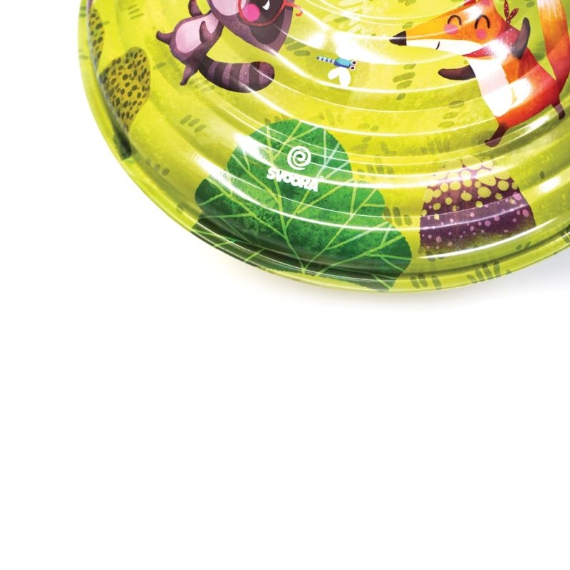 Πιέστε συνεχόμενα το έμβολο της σβούρας προς τα κάτω και το μαγικό ταξίδι στο Δάσος με τα ζωάκια ξεκινά! Παρατηρήστε τα σχέδια που δημιουργούνται καθώς η σβούρα στροβιλίζεται και ακούστε τον ήχο που κάνει ο αέρας. Ένα κλασικό παιχνίδι που θα διασκεδάσει μικρούς και μεγάλους και θα μείνει για πάντα στη συλλογή σας. Κατασκευασμένο από μεταλλικό υλικό με λεπτομέρειες πλαστικού.