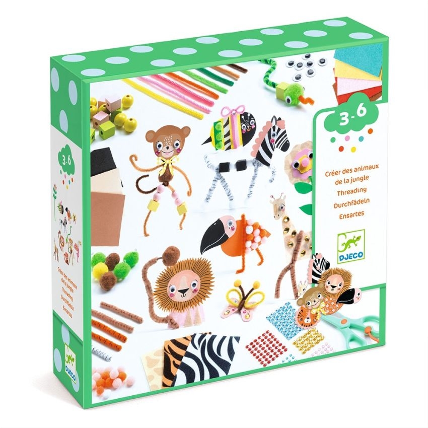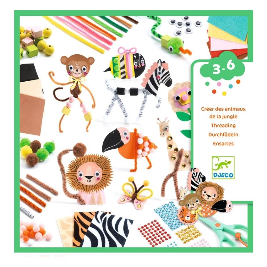 Γνωρίστε τα ζωάκια της ζούγκλας! Αξιοποιήστε τον ελεύθερο χρόνο των παιδιών δημιουργικά με τα σετ χειροτεχνιών της εταιρείας Djeco. Αυτό το σετ δημιουργικής απασχόλησης περιέχει όλα όσα χρειάζεστε για να κάνετε τη φαντασία πράξη και να περάσετε αμέτρητες δημιουργικές ώρες. Περιλαμβάνει χάντρες, αυτοκόλλητα, πον-πον, ματάκια, συρματάκια κ.ά. για να κατασκευάσετε ζωάκια της ζούγκλας. Όλα βρίσκονται στη συσκευασία…ακόμα και οι ιδέες. Διαφορετικά υλικά για κολάζ, συναρμολόγηση & κοπή. Ένας εξαιρετικός τρόπος ανάπτυξης της λεπτής κινητικότητας, που ενθαρρύνει τη δημιουργικότητα των παιδιών αποτελώντας έναν φανταστικό τρόπο πειραματισμού και ενασχόλησης με διαφορετικά είδη τέχνης και χειροτεχνίας. Κατασκευασμένο από υλικά υψηλής ποιότητας, πληροί όλα τα πρότυπα ασφαλείας.