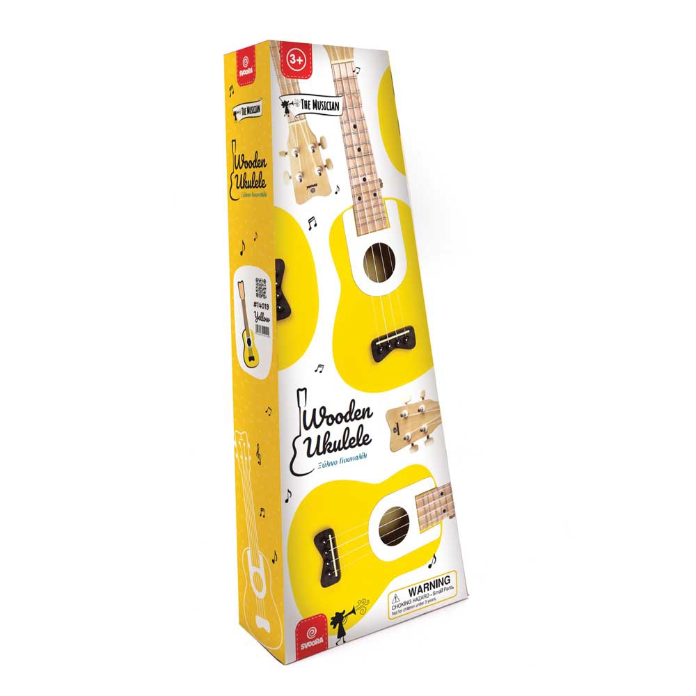Ξύλινο κίτρινο γιουκαλίλι με 4 χορδές και μηχανισμό κουρδίσματος, έτοιμο να γίνει ο καλύτερος φίλος σας στην εξερεύνηση του μαγικού κόσμου της μουσικής. Μια υπέροχη προσθήκη στη σειρά με τις κιθάρες, για πιο ιδιαίτερους εναλλακτικούς ήχους. Κατασκευασμένο από ασφαλή υλικά και χρώματα εξαιρετικής ποιότητας, με minimal μοντέρνα πινελιά. Περιλαμβάνει ανθεκτικό ιμάντα για ασφαλή χρήση αλλά και για να μπορείτε να το κρεμάσετε. Κατάλληλο για την ανάπτυξη βασικών ακουστικών και δημιουργικών δεξιοτήτων, τον συντονισμό χεριού-ματιού αλλά και της λεπτής κινητικότητας. Ένα μουσικό όργανο για νέους μουσικούς που ετοιμάζονται να κάνουν τα πρώτα τους βήματα στην εκμάθηση υπέροχων μελωδιών και να δημιουργήσουν τη δική τους μπάντα!