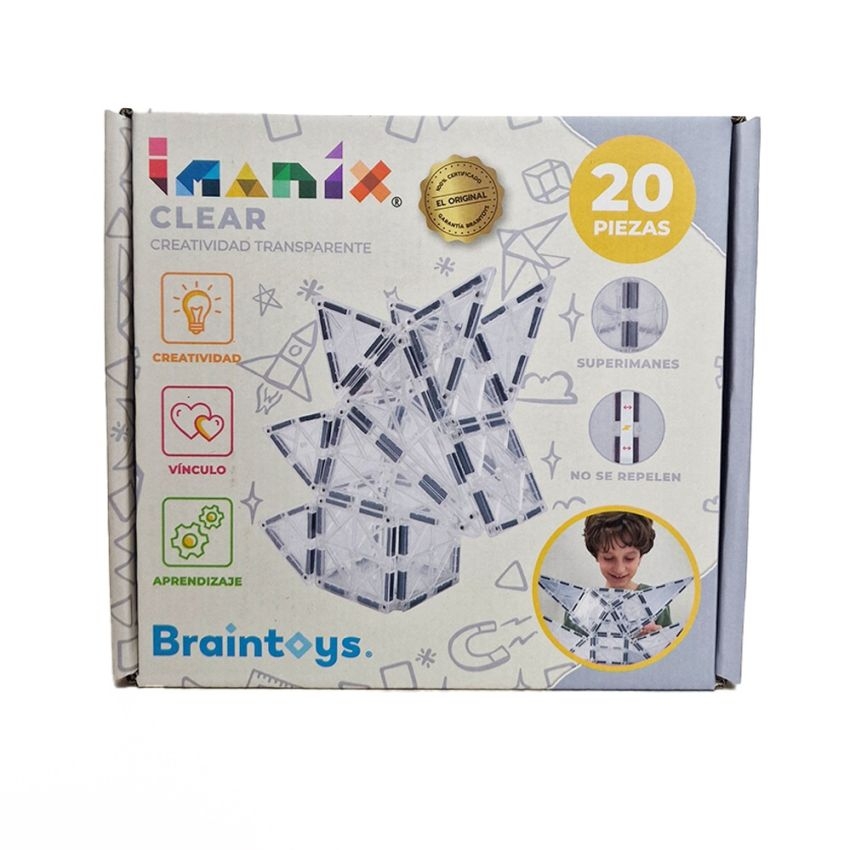 Η εταιρεία IMANIX κάνει τις κατασκευές ακόμα πιο εντυπωσιακές στον κόσμο του δημιουργικού παιχνιδιού χάρη στον μίνιμαλ σχεδιασμό και τις μαγνητικές ιδιότητες των πλακιδίων τους. Μια ενασχόληση που ενθαρρύνει τα παιδιά να αναπτύξουν τη δημιουργικότητά τους, τη λεπτή κινητικότητα, τον συντονισμό ματιού – χεριού καθώς και τη φαντασία τους. Η συσκευασία περιλαμβάνει 20 μαγνητικά κομμάτια διάφανα και βιβλίο οδηγιών. Όλα τα μέρη του παιχνιδιού έχουν τέτοιο μέγεθος, που δε μπορούν να καταποθούν και είναι κατασκευασμένα από μη τοξικά υλικά, χωρίς BPA και λάτεξ.