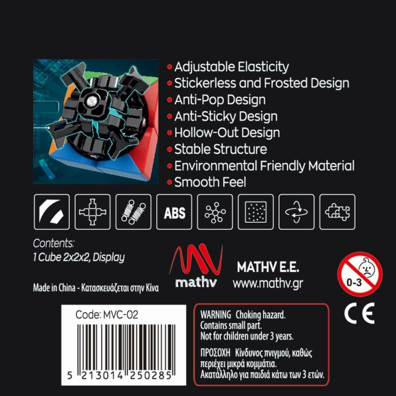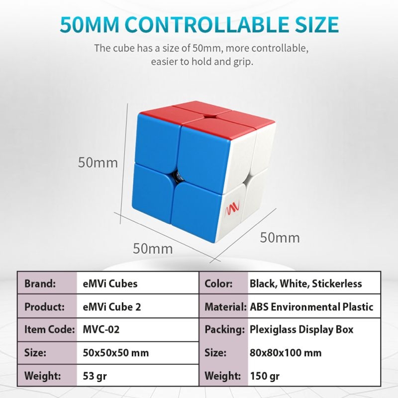 Αυτός είναι ο κύβος 2*2 των eMVi Cubes. Το eMVi Cubes είναι ένα νέο brand στον κόσμο των κύβων που αναπτύχθηκε από την Μαθηματική Βιβλιοθήκη σε συνεργασία με το μεγαλύτερο κατασκευαστή κύβων στον κόσμο και κάτοχο των σημαντικότερων παγκοσμίων ρεκόρ speedcubing. Ενσωματώνει όλες τις τεχνολογικές εξελίξεις των τελευταίων χρόνων και με ένα νέο μηχανισμό περιστροφής, προσφέρει μια νέα εμπειρία στους λάτρεις των κύβων και παιχνιδιών λογικής: Χωρίς αυτοκόλλητα, με ρυθμιζόμενη ελαστικότητα, σταθερή δομή, εξαιρετικά ομαλή και γρήγορη περιστροφή, με νέες τεχνολογίες Anti-Pop, Anti-Sticky, Frosted και Hollow-Out. Χρησιμοποιεί φιλικά προς το περιβάλλον υλικά. Προσφέρεται σε ένα όμορφο διαφανές σταντ-βιτρίνα που προστατεύει τον κύβο και θα ομορφαίνει το γραφείο ή την βιβλιοθήκη σας. Ξεκινήστε το ταξίδι σας προς την κορυφή με τα νέα eMVi Cubes!