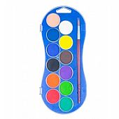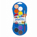 Carioca νερομπογιές, 12 χρωμάτων διαμέτρου 30mm. Μέσα σε ανθεκτική κασετίνα και δώρο πινέλο. Πλούσια και ζωντανά χρώματα, υψηλής ποιότητας. Με ειδική τεχνολογία ώστε τα χρώματα να στεγνώνουν φυσικά χωρίς να χάνεται η ποιότητα των υλικών. Το καπάκι μπορεί να αφαιρεθεί πλήρως για να χρησιμοποιηθεί ως μια παλέτα.