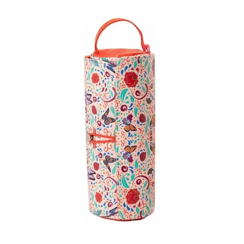 Αναδιπλούμενη (roll-up) κασετίνα Frida Kahlo Viva la Vida by Grupo Erik που εντυπωσιάζει για το καλαίσθητο, ρομαντικό της σχέδιο με αγριολούλουδα, καθώς και για την απίστευτη πρακτικότητα που προσφέρει. Με floral σχέδιο σε τόνους λιλά και εκρού είναι τέλεια για όσους αναζητούν μια φρέσκια και φυσική πινελιά στο καθημερινό τους στιλ. Επιπλέον, η θήκη καθαρίζεται εύκολα και είναι ιδανική για την αποθήκευση πινέλων, μολυβιών, ακόμη και πινέλων μακιγιάζ. Με έξυπνο κυλινδρικό σχεδιασμό, η κασετίνα ανοίγει και ξεδιπλώνεται εύκολα, για να τοποθετήσετε στη σειρά τα απαραίτητα αξεσουάρ σας, από πινέλα μακιγιάζ, έως είδη γραφής (μολύβια, στυλό) και διαθέτει εσωτερικά και μια ιδιαίτερα ευρύχωρη θήκη που κλείνει με φερμουάρ, για την αποθήκευση πολλών μικρών αντικειμένων. Παράλληλα, η κασετίνα έχει πρακτική λαβή χειρός, για ακόμη πιο άνετη μεταφορά.