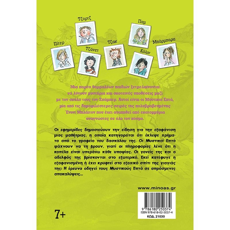 Οι εφημερίδες δημοσιεύουν την είδηση για την εξαφάνιση μιας μαθήτριας, η οποία κατηγορείται ότι έκλεψε χρήματα από το γραφείο του δασκάλου της. Οι Μυστικοί Επτά ψάχνουν να τη βρουν, γιατί οι πληροφορίες λένε ότι η κοπέλα είναι υπεράνω κάθε υποψίας. Οι γονείς της και ο αδελφός της βρίσκονται στο εξωτερικό. Εκεί κατέφυγε η εξαφανισμένη ή έχει κρυφτεί στο εξοχικό σπίτι της γιαγιάς της; Η έρευνα οδηγεί τους Μυστικούς Επτά σε απρόσμενες αποκαλύψεις…
