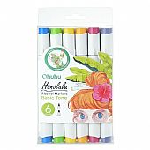 Art Markers: Σετ Μαρκαδόρων Honolulu Alcohol - Basic Tones Brush & Chisel (6 Χρωμάτων) - Ohuhu