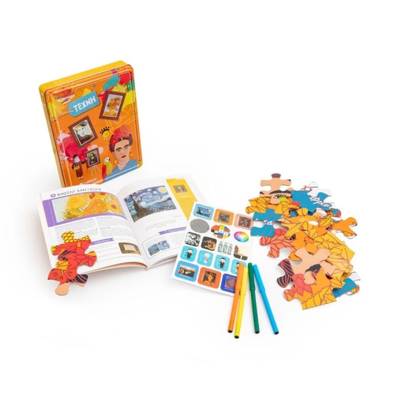 Αυτό το υπέροχο μεταλλικό κουτί είναι γεμάτο δημιουργικές δραστηριότητες και γνώσεις για τη ζωή και το έργο των πιο διάσημων ζωγράφων. Περιλαμβάνει ένα βιβλίο 32 σελίδων, γεμάτο πληροφορίες που θα σε ταξιδέψουν στον κόσμο της τέχνης, καθώς και περισσότερα από 30 αυτοκόλλητα που μπορείς να χρησιμοποιήσεις για να διακοσμήσεις τις δημιουργίες σου. Επιπλέον, θα βρεις ένα παζλ δύο όψεων με 36 κομμάτια, το οποίο μπορείς να συναρμολογήσεις και να χρωματίσεις με τους 4 μαρκαδόρους που περιέχονται, δίνοντάς σου την ευκαιρία να εκφράσεις τη φαντασία και τη δημιουργικότητά σου. Ιδανικό για παιδιά από 5 ετών και πάνω, το κουτί αυτό είναι μια τέλεια αφορμή για να ανακαλύψεις την τέχνη με έναν διασκεδαστικό και εκπαιδευτικό τρόπο.