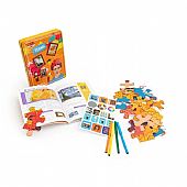 Περιλαμβάνονται: Περισσότερα από 30 αυτοκόλλητα, παζλ δύο όψεων με 36 κομμάτια, βιβλίο 32 σελίδων και 4 μαρκαδόρους.
