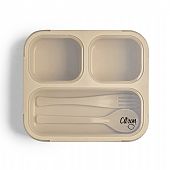 Φαγητοδοχείο Πλαστικό με Διαχωριστικά, Κουτάλι & Πιρούνι - Beige (600ml) - Citron