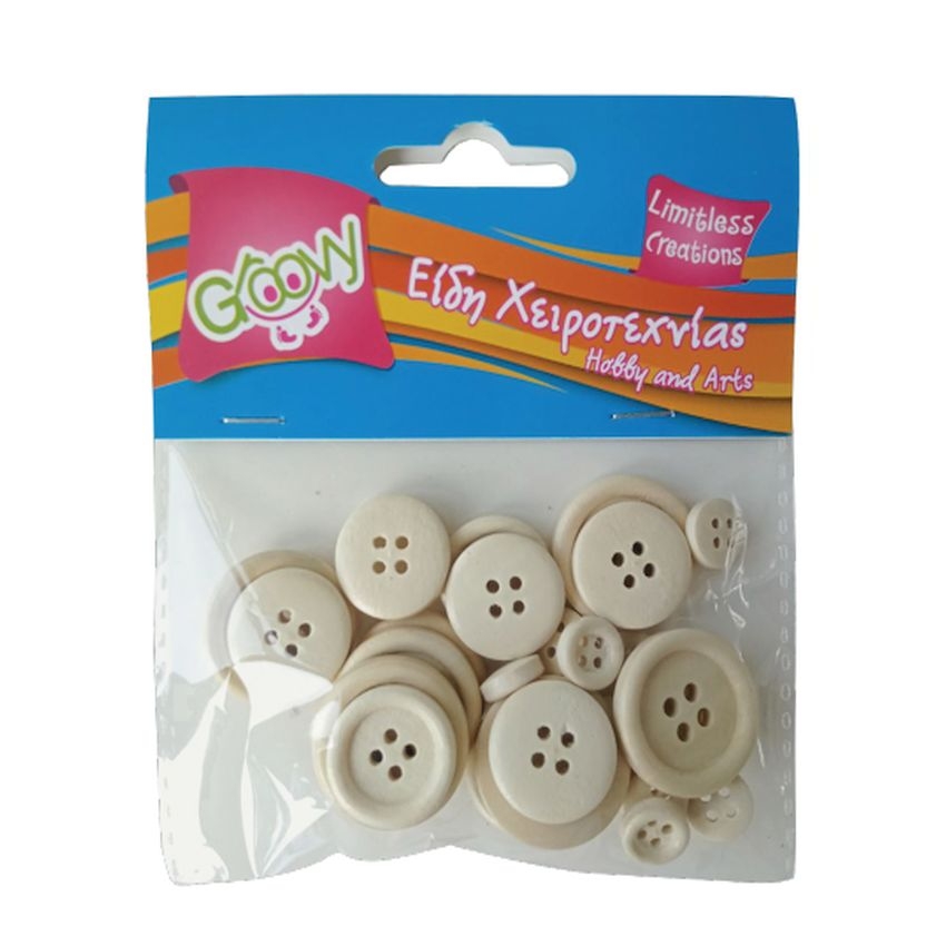 Ξύλινα Κουμπιά χειροτεχνίας (11mm,18mm,22mm/24τμχ.) - Groovy