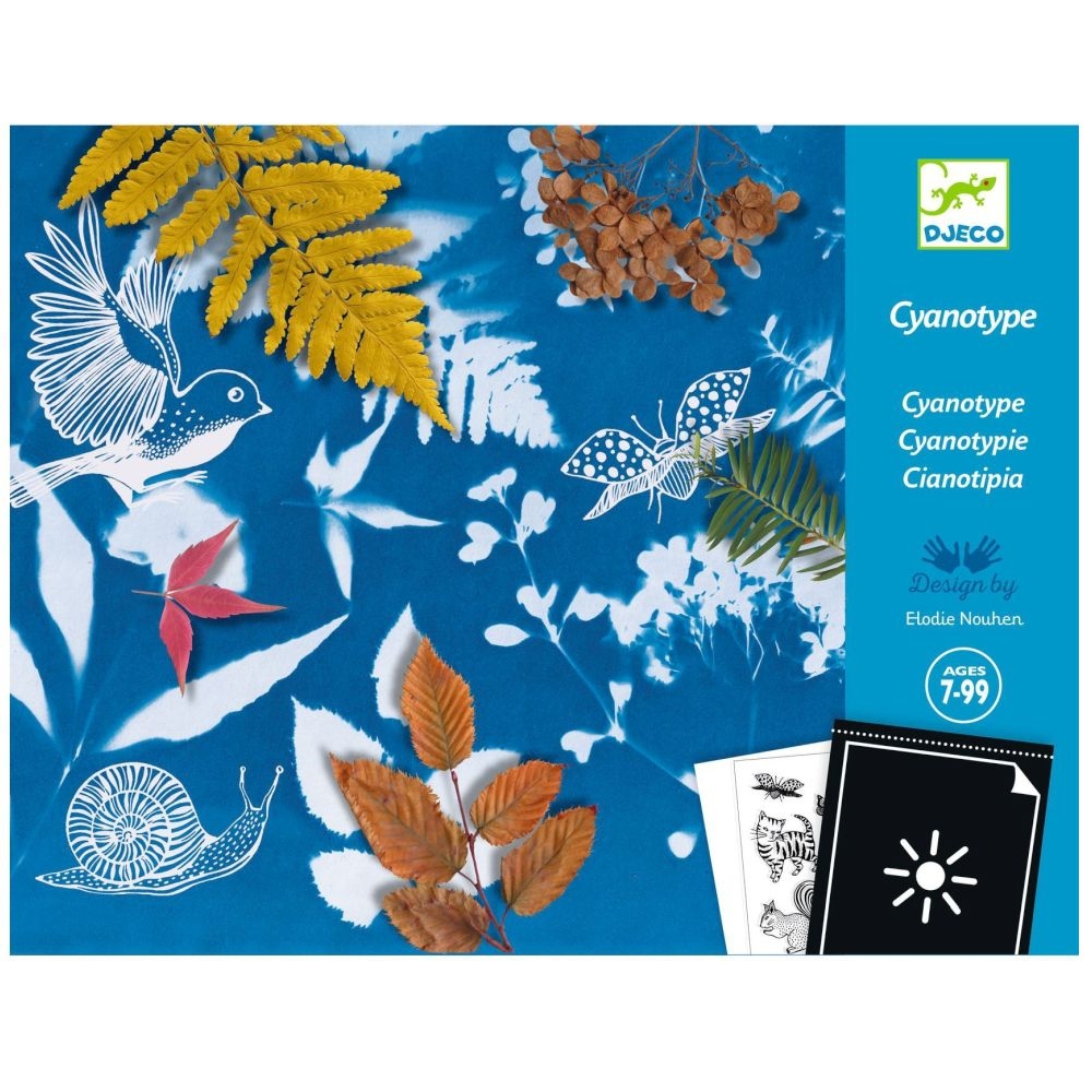 Σετ κυανοτυπίας από την εταιρία Djeco, με φωτοευαίσθητα χαρτιά που μπορούν να χρησιμοποιηθούν ελεύθερα με δικά σας σχέδια ή με τα εκτυπωμένα σχέδια που περιλαμβάνονται στο σετ. Όταν εκτίθενται στο φως του ήλιου, παράγεται ένα αρνητικό των μοτίβων στο χαρτί. Στη συνέχεια, το μόνο που χρειάζεται να κάνετε είναι να ξεπλύνετε το χαρτί με καθαρό νερό και να παρακολουθήσετε τις δημιουργίες σας να εμφανίζονται στο μπλε φόντο! Όλα όσα χρειάζεστε για να δημιουργήσετε 8 ντελικάτες συνθέσεις. Μια απλή δραστηριότητα που δεν χρειάζεται να χρησιμοποιηθούν χημικές ουσίες!