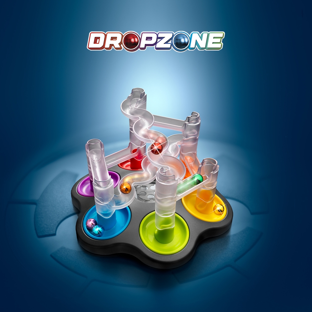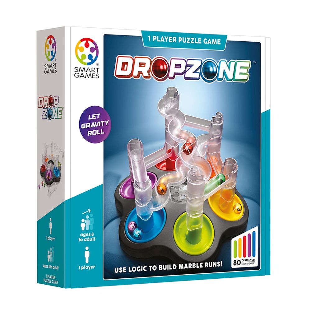 Σχεδιάστε το μονοπάτι προς τη νίκη! Χρησιμοποιήστε τη δημιουργική σας σκέψη και τις γνώσεις μηχανικής για να λύσετε συναρπαστικές προκλήσεις με το DropZone της Smart Games, το απόλυτο επιτραπέζιο τόμπογκαν! Οι παίκτες καλούνται να κατασκευάσουν διαδρομές για μπίλιες. Ο στόχος είναι απλός αλλά απαιτητικός: δημιουργήστε μια διαδρομή με διαφορετικά μονοπάτια και καθοδηγήστε τις μπίλιες στις βάσεις, όπου προορίζονται. ΠΩΣ ΠΑΙΖΕΤΑΙ: Επιλέξτε μια πρόκληση. Οι προκλήσεις δείχνουν πού πρέπει να καταλήξουν οι μπίλιες για να λυθεί το παζλ. Χρησιμοποιήστε τα κομμάτια του παζλ για να δημιουργήσετε μια διαδρομή από το σημείο εκκίνησης των μπιλιών έως τη βάση - στόχο, όπως φαίνεται στην πρόκληση. Ελέγξτε τη λύση ρίχνοντας τις μπίλιες πάνω από τις βάσεις που ταιριάζουν με τα χρώματά τους.