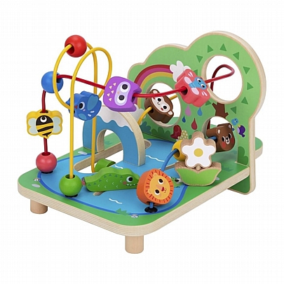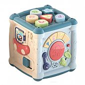 Περιλαμβάνει: 6 γεωμετρικά σχήματα με γράμματα και αριθμούς, τον μεγάλο κεντρικό κύβο, πλήκτρα μουσικής, κινούμενα μέρη, ένα καθρέφτη επιτρέποντας στα παιδιά να ανακαλύψουν την αντανάκλασή τους, ενισχύοντας την αυτογνωσία.