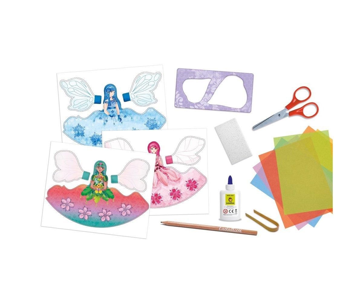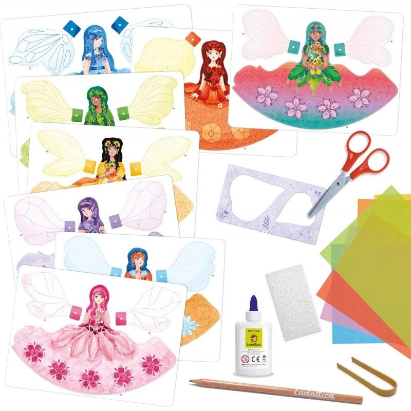 Περιλαμβάνει: 8 φύλλα με κομμάτια για να συναρμολογήσετε τις νεράιδες, χαρτί αφής για μαγικούς χρωματικούς συνδυασμούς και μοναδικά εφέ διαφάνειας, αξεσουάρ για κόψιμο & κόλληση και φυλλάδιο οδηγιών στα ελληνικά.