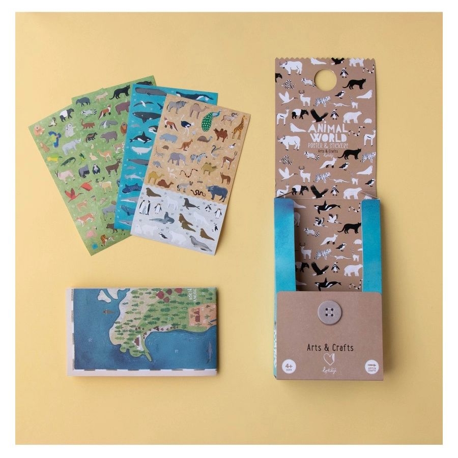 Περιλαμβάνει: 165 αυτοκόλλητα με διάφορα ζωάκια του κόσμου, μεγάλη αφίσα (67 x 46 εκ.).
