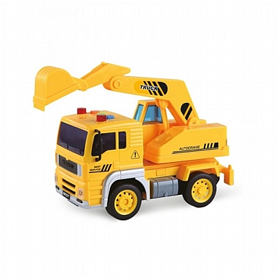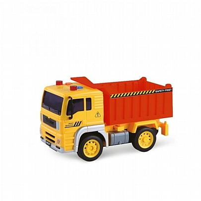 Ανακαλύψτε τη δυναμική νταλίκα εργοταξίου με ρεαλιστικά φώτα και ήχους, ιδανική για ατελείωτες ώρες παιχνιδιού! Χάρη στον μηχανισμό τριβής (friction power), μπορείτε να την «κουρδίσετε» σπρώχνοντάς την προς τα εμπρός και να τη δείτε να κινείται μόνη της. Για τη λειτουργία του απαιτούνται 6 x LR44 μπαταρίες που περιλαμβάνονται στη συσκευασία.