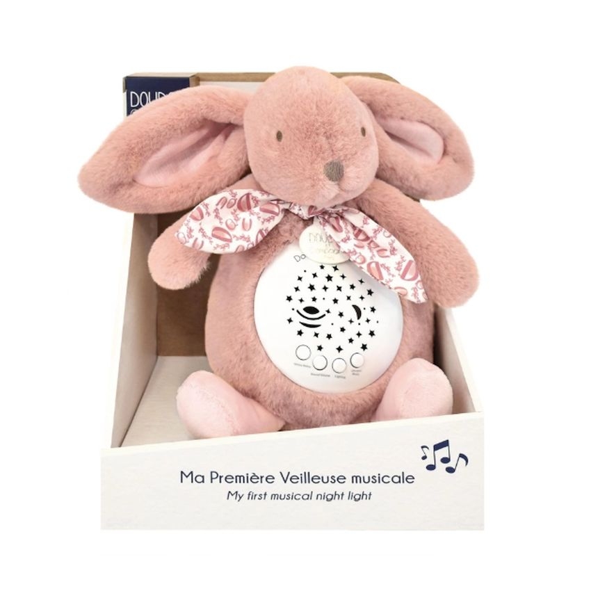 Το Πρώτο μου Μουσικό Φωτάκι Νυκτός - Λούτρινος Προτζέκτορας Ροζ Κουνελάκι - Doudou & Compagnie