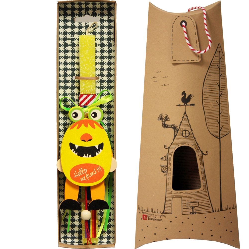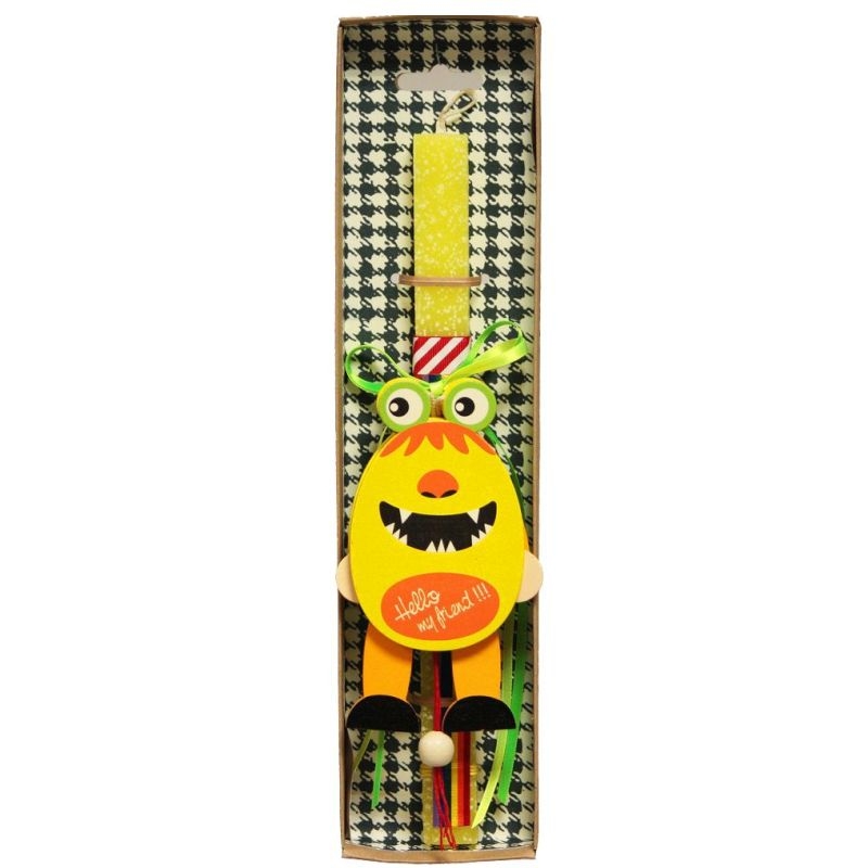 Πασχαλινή Λαμπάδα Αρωματική Κίτρινη (30εκ.) - Ξύλινο Στολίδι: Τερατάκι