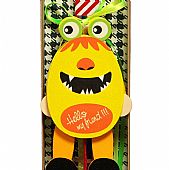 Διακοσμημένη με ένα χαριτωμένο ξύλινο τερατάκι μαριονέτα. Το κερί είναι αρωματικό, χειροποίητο και κατασκευάζεται στην Ελλάδα. Τα υλικά διακόσμησης είναι υψηλής ποιότητας. Τα αντικείμενα σχεδιάζονται ή επιλέγονται όχι μόνο για την αισθητική αλλά και για την αυθεντικότητα, την φιλικότητα προς το περιβάλλον και το δίκαιο εμπόριο. Η βάση προβολής και το εξωτερικό κουτί δώρου περιλαμβάνονται.