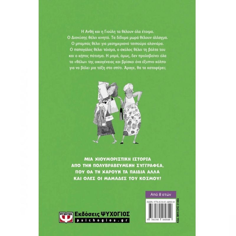 Η Ανθή και η Γιούλη τα θέλουν όλα έτοιμα. Ο Διονύσης θέλει κινητό. Τα δίδυμα μωρά θέλουν άλλαγμα. Ο μπαμπάς θέλει για μεσημεριανό τσιπούρα αλανιάρα. Ο παπαγάλος θέλει τάισμα, ο σκύλος θέλει τη βόλτα του και ο κήπος πότισμα. Η μαμά, όμως, δεν προλαβαίνει όλα τα «θέλω» της οικογένειας και βρίσκει ένα έξυπνο κόλπο για να βάλει μια τάξη στο σπίτι. Άραγε, θα τα καταφέρει; Μια χιουμοριστική ιστορία από την πολυβραβευμένη συγγραφέα που θα τη χαρούν τα παιδιά αλλά και όλες οι μαμάδες του κόσμου!
