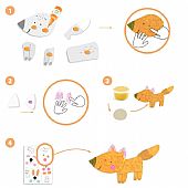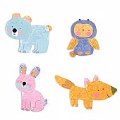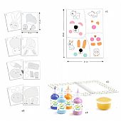 Περιέχει: 4 εικόνες για να χρωματίσει και να συναρμολογήσει το παιδί, 4 δοχεία με δαχτυλομπογιές, 1 σουπλά, 1 φύλλο με αυτοκόλλητα και βιβλιαράκι με οδηγίες.