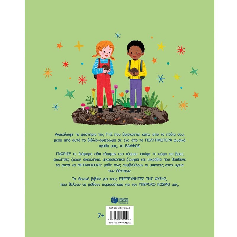 Ανακάλυψε τα μυστήρια της ΓΗΣ που βρίσκονται κάτω από τα πόδια σου, μέσα από αυτό το βιβλίο-αφιέρωμα σε ένα από τα ΠΟΛΥΤΙΜΟΤΕΡΑ φυσικά αγαθά μας, το ΕΔΑΦΟΣ. ΓΝΩΡΙΣΕ τα διάφορα είδη εδαφών του κόσμου∙ σκάψε το χώμα και βρες φωλίτσες ζώων, σκουλήκια, μικροσκοπικά ζωύφια και μικρόβια που βοηθάνε τα φυτά να ΜΕΓΑΛΩΣΟΥΝ∙ μάθε πώς συμβάλλουν οι μύκητες στην υγεία των δέντρων. Το ιδανικό βιβλίο για τους ΕΞΕΡΕΥΝΗΤΕΣ ΤΗΣ ΦΥΣΗΣ, που θέλουν να μάθουν περισσότερα για τον ΥΠΕΡΟΧΟ ΚΟΣΜΟ μας. Μια πρώτη επιστημονική ματιά στο χώμα σε συνεργασία με τη National Trust.