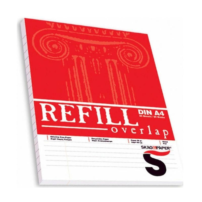 Μπλοκ γραφής ριγέ με περιθώριο Refill της σειράς Skag . Λειτουργικό, με εξώφυλλο που ανοίγει από πάνω, ενώ μπορεί και να αρχειοθετηθεί καθώς διαθέτει 4 τρύπες στην αριστερή πλευρά.