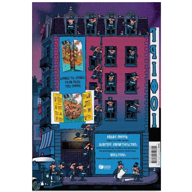 Επιτέλους νέοι γρίφοι! Γρίφοι σε όλα τα επίπεδα! Ένα λαμπρό βιβλιοπαιχνίδι που διπλώνεται και μεταμορφώνεται σε κάθε έρευνα, και στο οποίο ο αναγνώστης γίνεται ντετέκτιβ! Για κάθε γρίφο, τίθενται ερωτήσεις και δίνονται στοιχεία. Το παιδί λύνει το αίνιγμα του και ανακαλύπτει τον/τους ένοχους με τη βοήθεια των μαρτυριών των θυμάτων και την παρατήρηση των εσωτερικών και εξωτερικών σκηνικών. Γρίφοι που είναι πάντα τόσο διαφορετικοί, πλούσιοι σε χρώμα με γραφικούς χαρακτήρες.