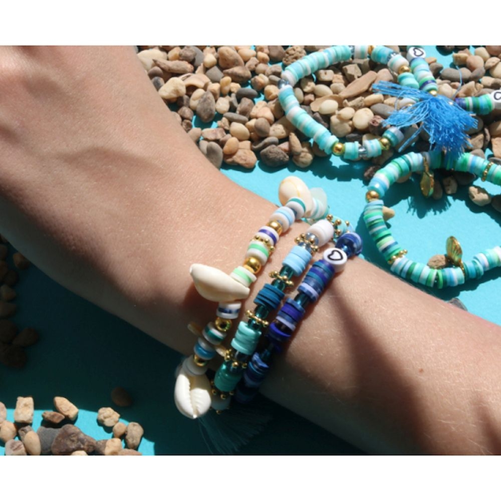 Περιλαμβάνει: Χάντρες Heishi 6 mm, χάντρες με γράμματα και σχέδια και κοχύλια.